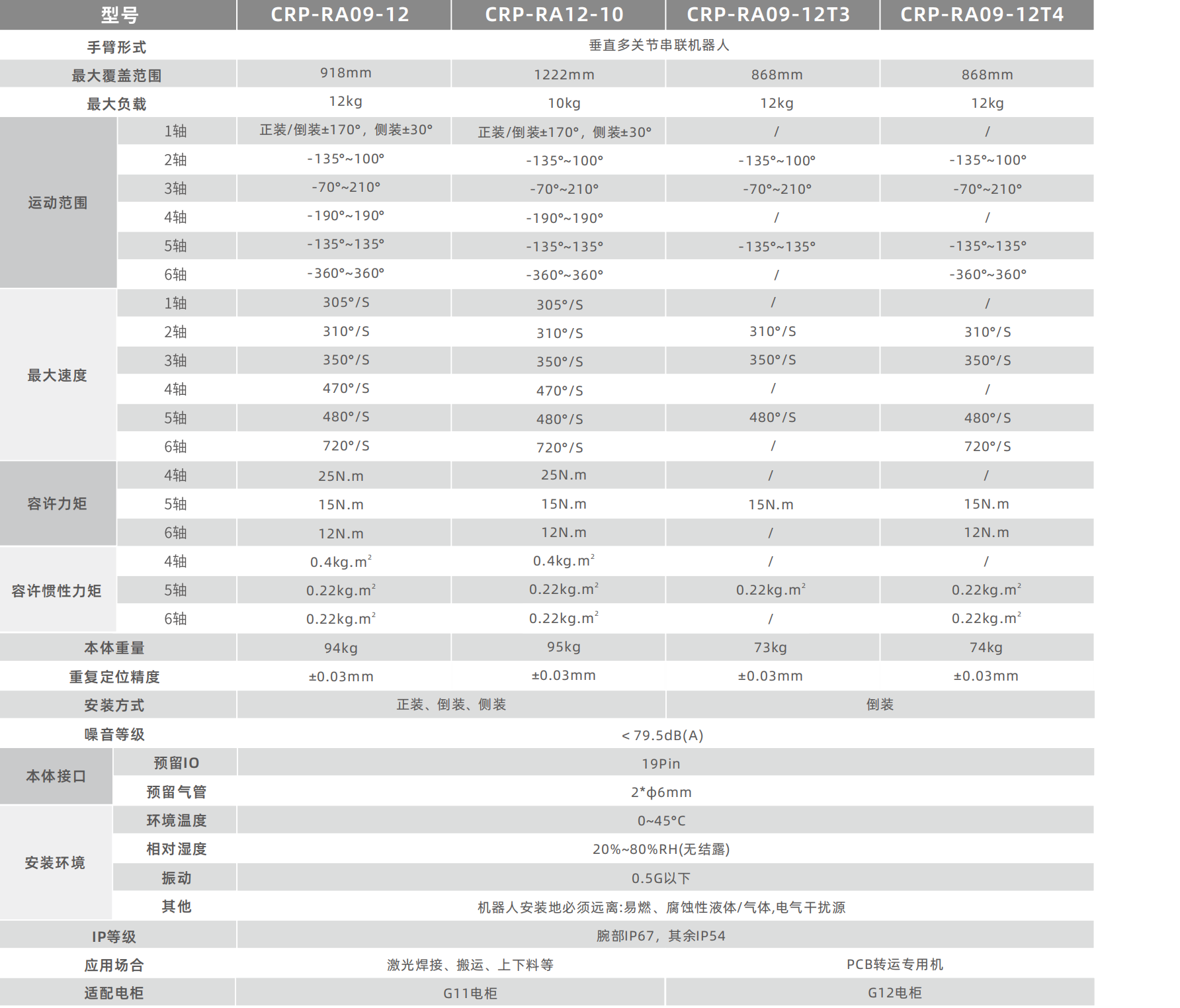 • 本体采用高刚性设计方案,其刚性更高。内部全封闭方案,小臂防护等级达IP67,负载更大,范围更广,机器人负载12kg,臂展为900mm,机器人手腕具备更高的扭矩和惯量,负载承受能力更强,应用的场景更广。